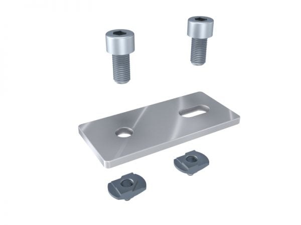 The Connector Steel Plate 40 is used as an adjustable mounting plate, joining sections of profiles together. Partitioning, work benches, and frames are all examples of applications which we use this connector. It can be purchased as a kit which includes all the necessary screws and fasteners for assembly.